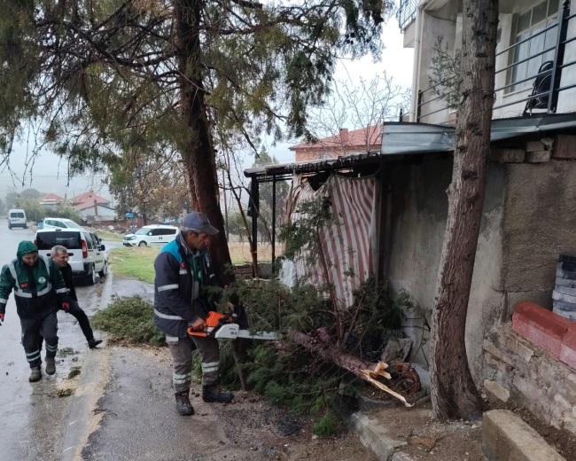 Pamukkale Belediyesi Ekiplerinden Fırtına Ve Sağanak Yağışa Hızlı Müdahale