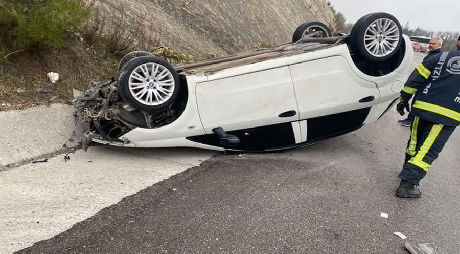 Yolda Savrulan Araç Takla Attı